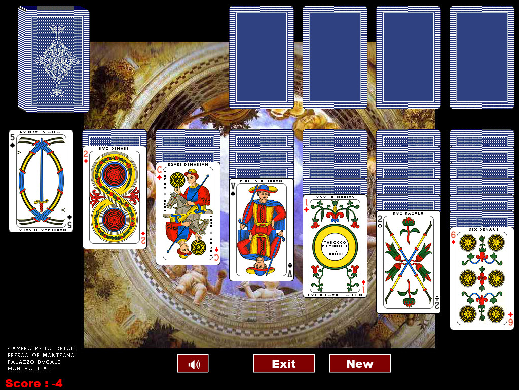 The solitaire I created is the classic Klondike, which I implemented using the forty Italian Briscola cards and the fifty-six of the Piemontese Tarot.